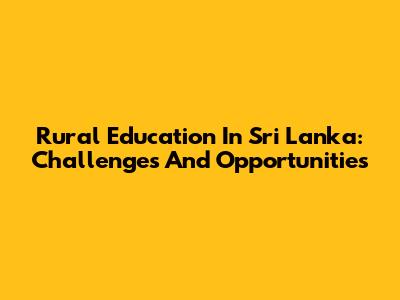 Rural Education In Sri Lanka: Challenges And Opportunities