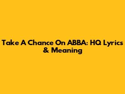 Take A Chance On ABBA: HQ Lyrics & Meaning
