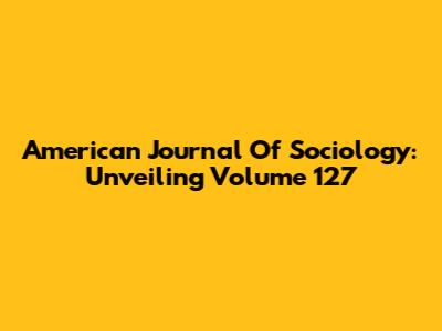American Journal Of Sociology: Unveiling Volume 127