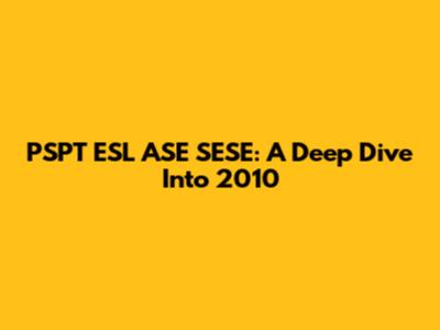 PSPT ESL ASE SESE: A Deep Dive Into 2010