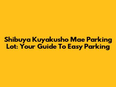 Shibuya Kuyakusho Mae Parking Lot: Your Guide To Easy Parking