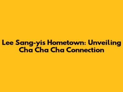 Lee Sang-yi's Hometown: Unveiling Cha Cha Cha Connection