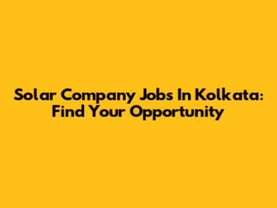 Solar Company Jobs In Kolkata: Find Your Opportunity