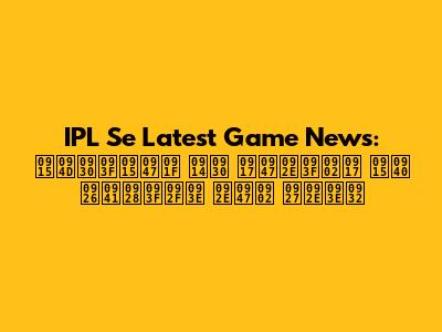 IPL se latest game news in hindi में हम आपको IPL गेमिंग में सफलता के लिए कुछ टिप्स और ट्रिक्स भी देंगे। इन टिप्स और ट्रिक्स का पालन करके, आप अपने गेमप्ले को बेहतर बना सकते हैं और अधिक अंक अर्जित कर सकते हैं।