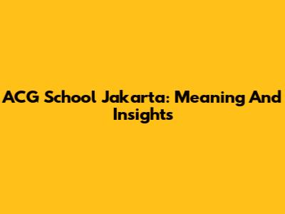 ACG School Jakarta: Meaning And Insights
