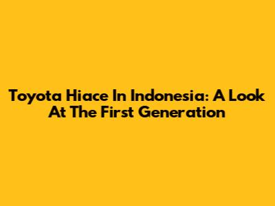 Toyota Hiace In Indonesia: A Look At The First Generation