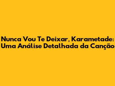 E aÃ, pessoal! Hoje, vamos mergulhar fundo em um clássico do pagode que, com certeza, já embalou muitos corações apaixonados: "Nunca Vou Te Deixar", da banda Karametade. Essa música, lançada no auge do grupo, se tornou um hino para os apaixonados e, mesmo anos depois, continua a tocar em festas e rodas de samba, mostrando que o amor verdadeiro nunca sai de moda.