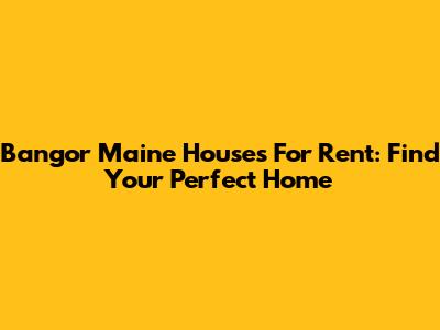 Bangor Maine Houses For Rent: Find Your Perfect Home