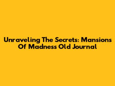Unraveling The Secrets: Mansions Of Madness Old Journal