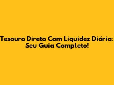 Tesouro Direto Com Liquidez Diária: Seu Guia Completo!