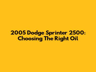 2005 Dodge Sprinter 2500: Choosing The Right Oil