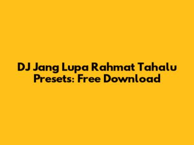 DJ Jang Lupa Rahmat Tahalu Presets: Free Download